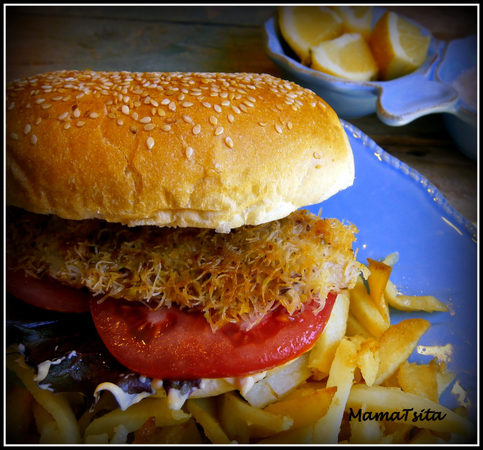 Burger ψαριού με καταϊφι.