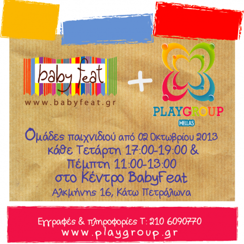 Μιλάμε για τις ομάδες παιχνιδιού που έφτιαξε τοPlayground Hellas για το  Κέντρο Babyfeat στα Πετράλωνα. Οι τομείς που καλλιεργούνται είναι: ανάπτυξη της κινητικότητας, εναλλακτικές δραστηριότητες, ελεύθερο παιχνίδι, κανόνες υγιεινής, γνωριμία με το σώμα μας, ένταξη στην ομάδα, αλληλεγγύη, επικοινωνία, γλώσσα και γραφή, θεατρική έκφραση, μουσική και λίγο από φυσικές επιστήμες και τεχνολογία. Όρεξη να ‘χετε να μαθαίνετε δηλαδή! Πάντως ως πρώτος ραδιοφωνικός σταθμός για παιδιά στο διαδίκτυο δε θα μπορούσαμε να μην εκδηλώσουμε τη συμπάθεια μας για την μουσική ομάδα όπου θα ακούτε διάφορα είδη μουσικής, θα παίζετε με μουσικά όργανα, θα τραγουδάτε και θα χορεύετε! Για να μη σας πω για την καλλιτεχνική ομάδα όπου θα ζωγραφίζετε σε πίνακα, σε χαρτί, σε ύφασμα και  σε γυαλί. Σημειώστε μερικά ακόμα που μπορείτε να κάνετε εδώ: να μαγειρέψετε, να φυτέψετε και να κάνετε πειράματα.
