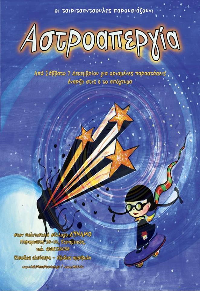 «H αρχική ιδέα της ‘Αστροαπεργίας’ γεννήθηκε με τα παιδιά μιας ομάδας θεατρικού παιχνιδιού, με μαθητές 5ης και 6ης δημοτικού. Μέσα από το παιχνίδι βγήκαν στην επιφάνεια πολλές απορίες, ερωτήσεις, αντιρρήσεις, ανησυχίες μα και όνειρα και πειράγματα και τραγούδια. Σε πρωτόλεια και ακατέργαστη μορφή, τόσο εύστοχα, ειλικρινή και τόσο σκληρά, όπως μόνο τα παιδιά ξέρουν να σε αφοπλίζουν και να σε αφήνουν γυμνό, μια κουκίδα στο χαρτί.»