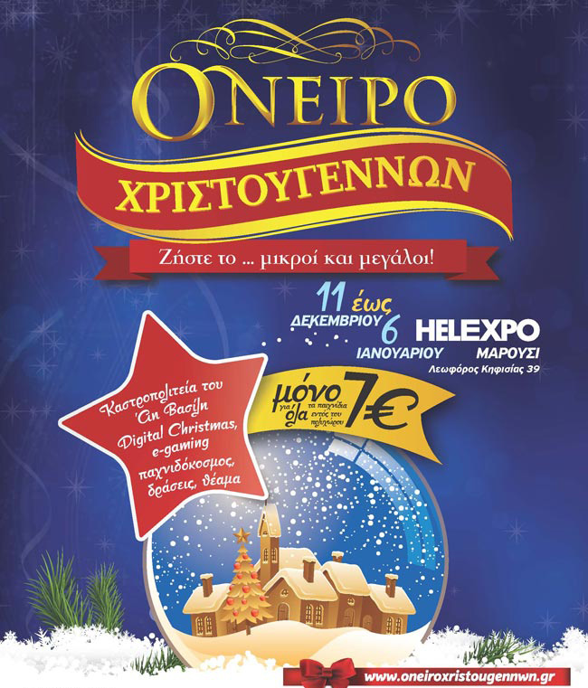 Σήμερα, 11/12 που γίνονται και τα εγκαίνια του «Ονείρου Χριστουγέννων» η είσοδος για το κοινό είναι δωρεάν.