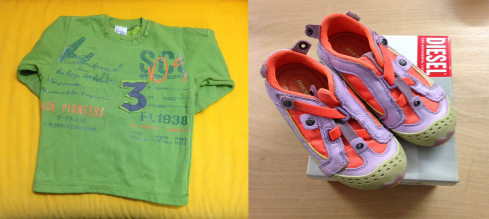 -Ένα τυχερό αγόρι θα κερδίσει ένα ζευγάρι παιδικά παπούτσια Diesel μωβ- πορτοκαλί Νο 26 από δέρμα κι άλλες ύλες και ένα λαχανί φούτερ μακρυμάνικο Frattina ηλικία: 3Α