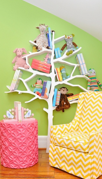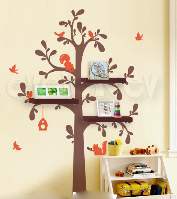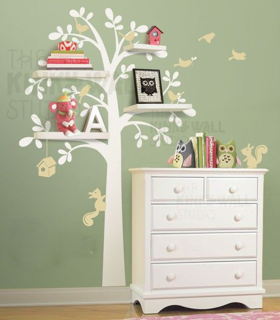 2. Ταιριάζει υπέροχα με τη συρταριέρα σας! Πολύ όμορφη σύνθεση, θα ξοδευτείτε μόνο για να παραγγείλετε σε κάποιο μαραγκό τα μικρά ραφάκια! Αφού ζωγραφίσετε τον κορμό και τα κλαδιά, χρησιμοποιήστε στένσιλ που θα φτιάξετε μόνοι σας από χαρτόνι για τα φύλλα. Όπως προσέξατε τα φυλλαράκια είναι όλα όμοια. Αποτυπώστε σε χαρτόνι τα φύλλα που σας αρέσουν και με ένα μολύβι σχεδιάστε τα προσεκτικά γύρω από τα κλαδιά!