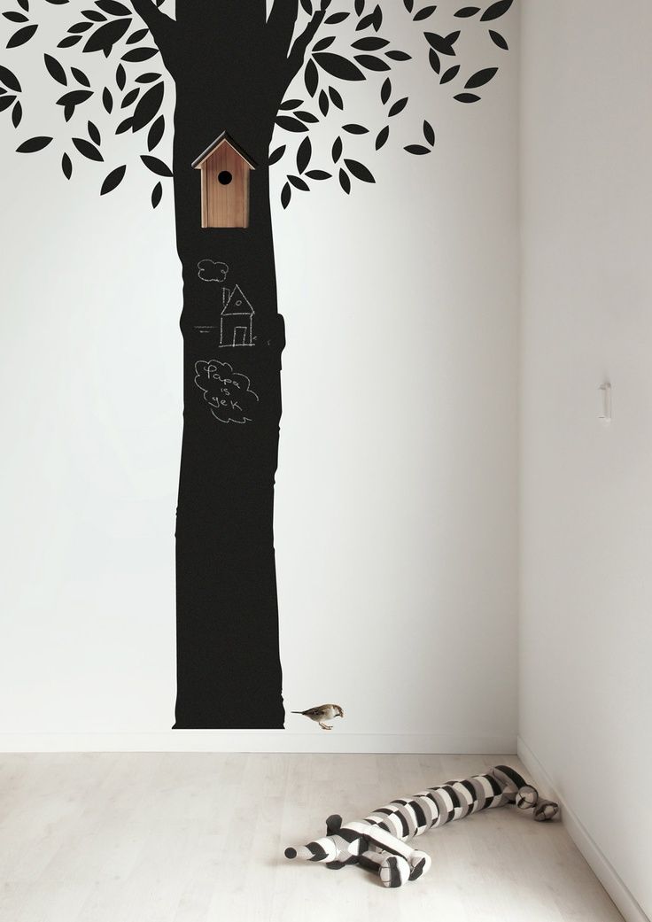 4. Για νεαρούς, νεαρές αλλά και για εμάς τους μεγάλους! Εξαιρετικό δέντρο, θα το πάρω! Εύκολο πολύ στην κατασκευή του όπως βλέπετε. Το φύλλωμα θα το κάνετε όσο φουντωτό θέλετε εσείς! Ανάλογα με την όρεξη και το κέφι σας, και φυσικά ανάλογα με το μέγεθος του δωματίου. Για να κάνετε τα φυλλαράκια θα χρησιμοποιήσετε στένσιλ όπως και στην προηγούμενη κατασκευή. Αν το επιλέξετε για παιδικό δωμάτιο, χρησιμοποιείστε την ειδική μπογιά που κάνει τον τοίχο «Μαυροπίνακα». Έτσι τα βλαστάρια σας θα μπορούν να γράφουν και να σβήνουν όσες φορές θέλουν!