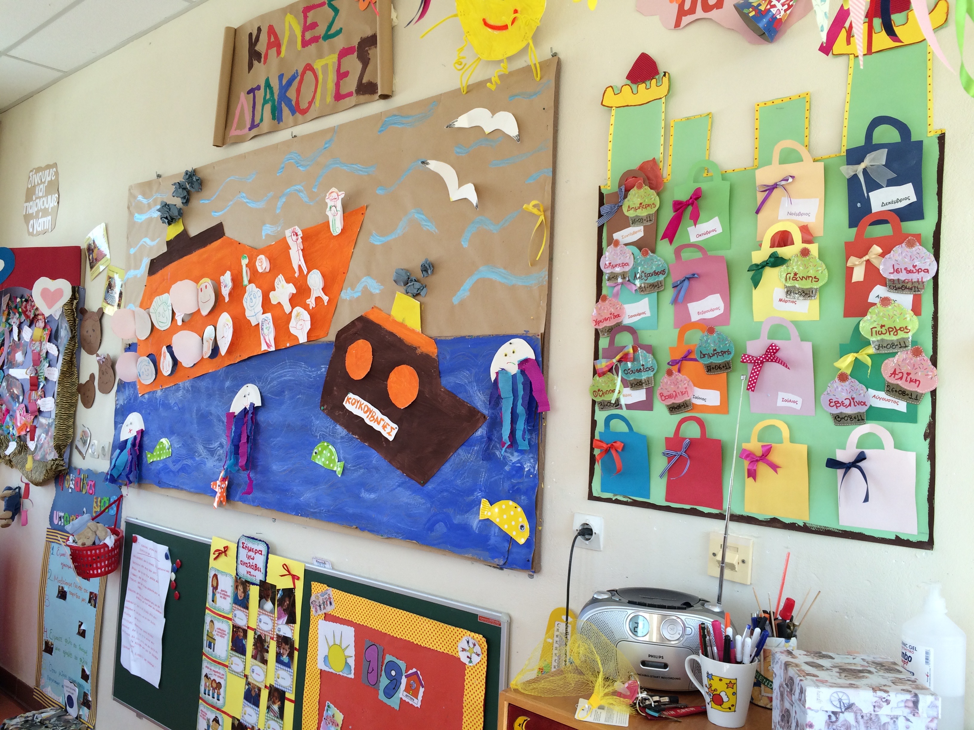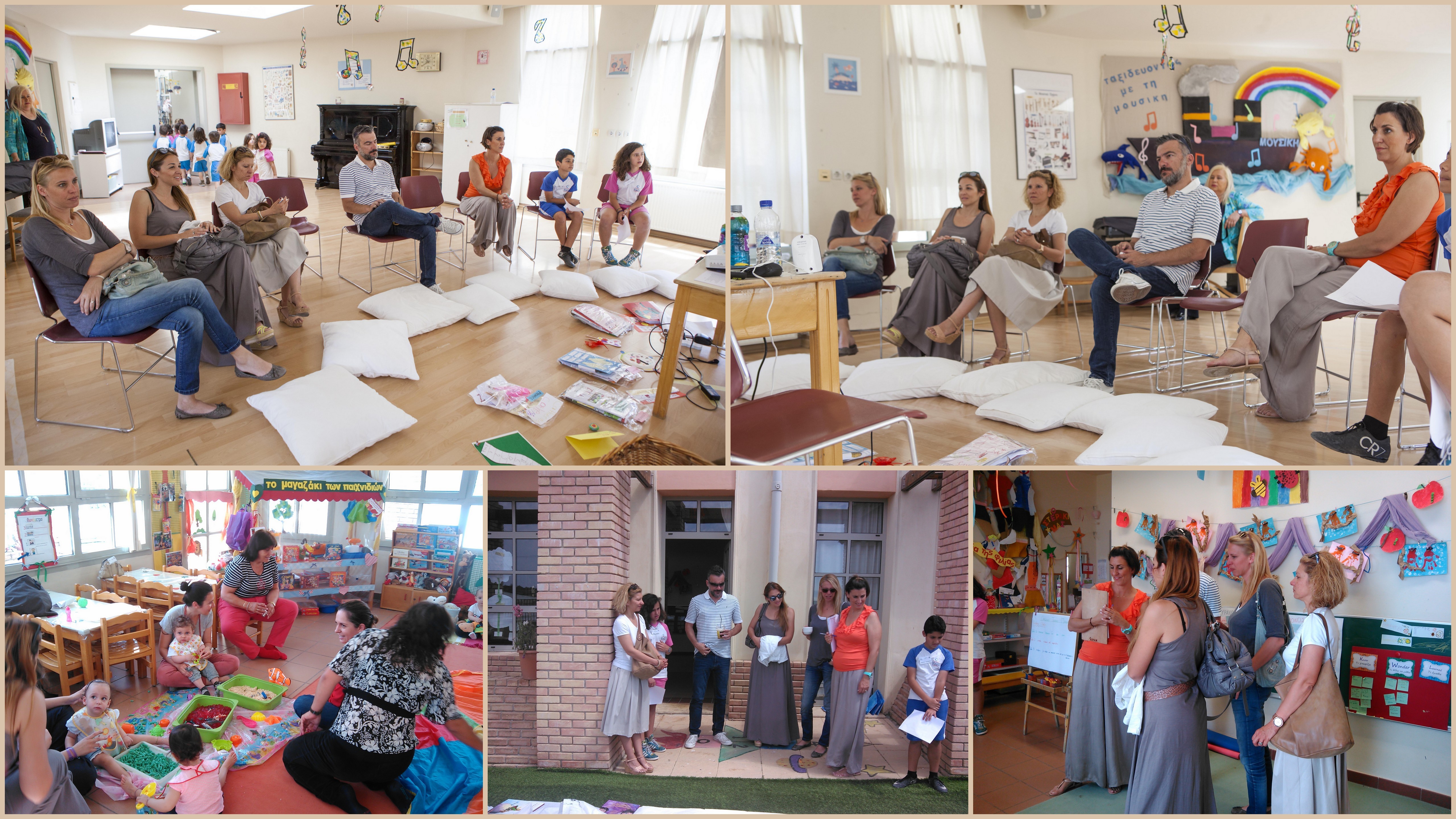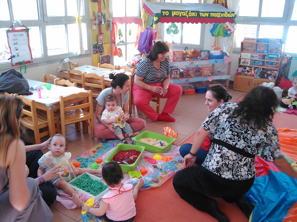 - παιχνίδια αισθήσεων (μπαλόνια, υφάσματα, μπάλες, νερό)
