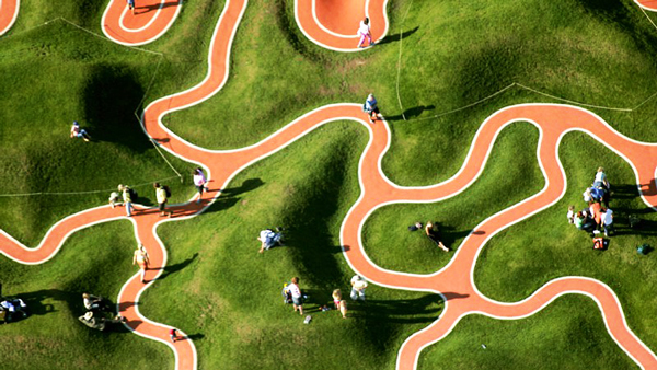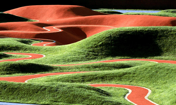 Το μόνο που θα διακρίνει κάποιος στο εσωτερικό της είναι κόκκινο ταρτάν και καταπράσινο γρασίδι να δημιουργούν εντυπωσιακά μονοπάτια, καταλήγοντας σε υψώματα ή σε βαθουλώματα!