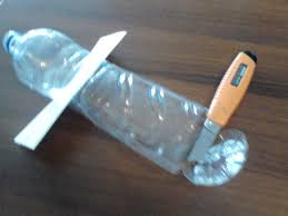 -Με ένα κοπίδι, αφαιρούμε τον πάτο από ένα μεγάλο μπουκάλι αναψυκτικού.