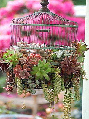 Εάν σας έχει ξεμείνει κανένα κλουβάκι από τα πουλάκια σας, φυτέψτε εκεί παχύφυτα που δεν θέλουν πολύ νερό, και… ιδού: