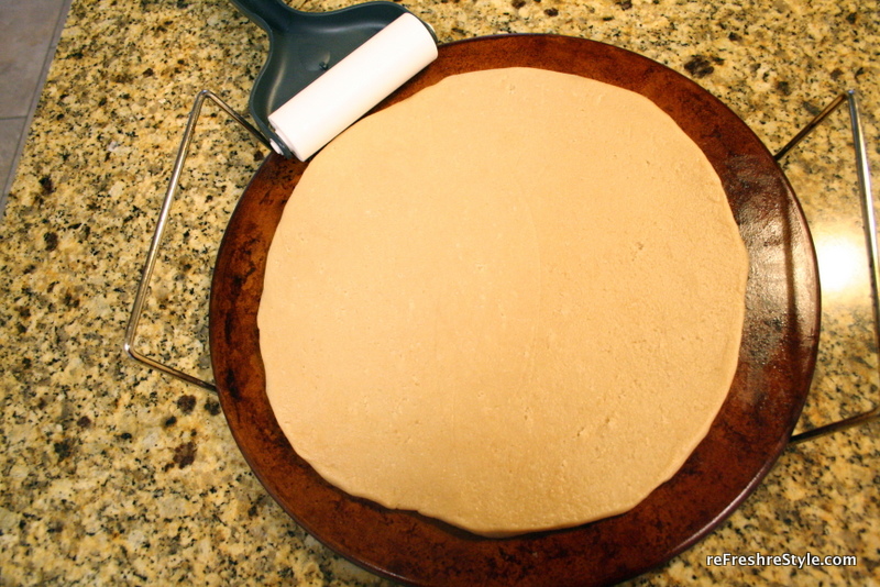 Απλώνουμε τη ζύμη σε ένα κατάλληλο σκεύος, όχι όμως μέχρι την άκρη γιατι θα απλώσει στο ψήσιμο.