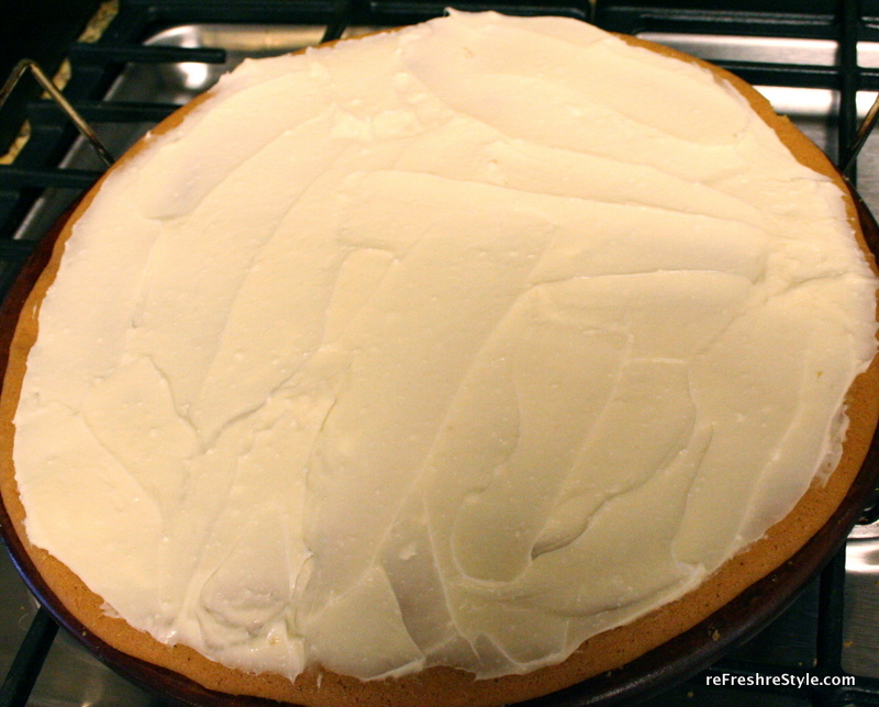 Την αφήνουμε να κρυώσει πριν απλώσουμε τα υπόλοιπα υλικά.