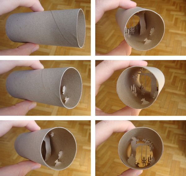 Για παράδειγμα, ποτέ δεν είχα σκεφτεί πως με το εσωτερικό ενός ρολού από χαρτί τουαλέτας ή το χαρτί κουζίνας θα κατασκεύαζα με τα παιδιά μου ένα σετ από μινιατούρες…
