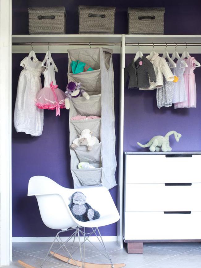 Πρόταση: Μπορείτε να βάψετε τον τοίχο της ντουλάπας πίσω ένα μοβ ή ένα ανοιχτό γκρι, καθώς και μπεζ ώστε να δίνει μία αίσθηση ηρεμίας όταν ανοίγετε τη ντουλάπα του παιδιού σας ή και τη δική σας.