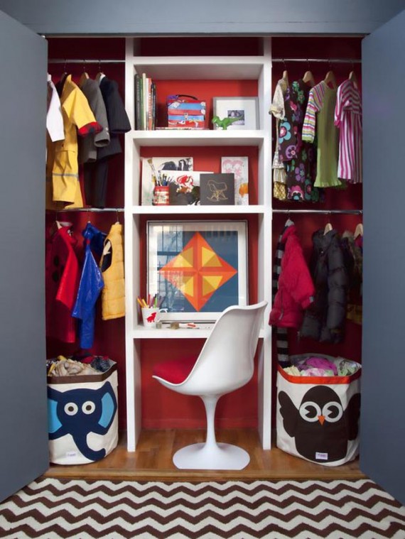 Άδεια και σκοτεινή ντουλάπα; Διπλασιάστε τη χωρητικότητά της προσθέτοντας άλλη μία ράβδο στη μέση για τις κρεμάστρες των ρούχων του παιδιού σας. Με την απόκτηση του επιπλέον χώρου, μπορείτε να κατασκευάσετε ένα γραφείο (ή πάγκο εργασίας) από μεσαίας πυκνότητας ινοσανίδες (MDF) για το διάβασμά του ή οποιαδήποτε κατασκευή ή άλλη δραστηριότητα επιθυμεί να κάνει το παιδί σας.