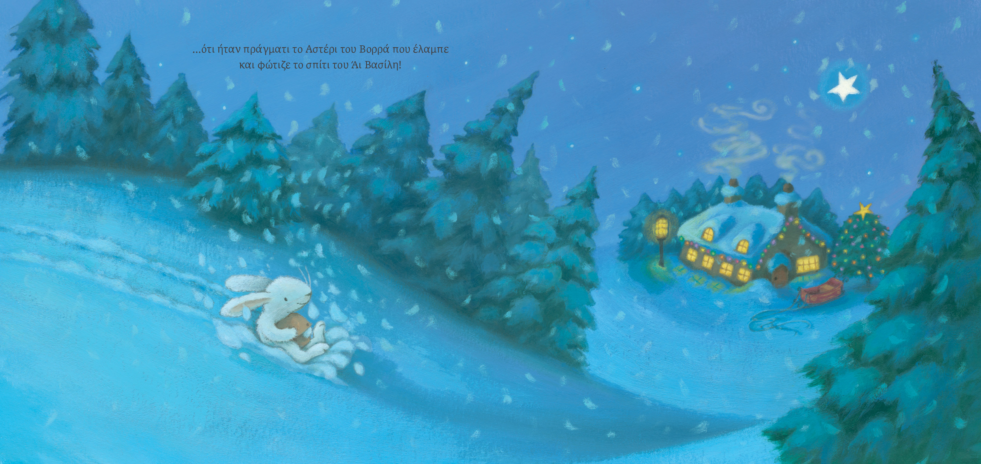 Στη διαδρομή συναντά μικρά ζωάκια, με τα οποία είναι πολύ ευγενικός και γενναιόδωρος (π.χ. χαρίζει τα γάντια του σε ένα αρκουδάκι που κρυώνει, δωρίζει τα χριστουγεννιάτικα μπισκότα του για να στολίσουν ένα δέντρο μέσα στο δάσος ή το χάρτη του σε ελαφάκια που έχουν χάσει το δρόμο τους). Κάπου εδώ καταλαβαίνετε μικροί βιβλιοφάγοι ότι μέχρι να φτάσει στον Άη Βασίλη η ευχή του έχει πραγματοποιηθεί.