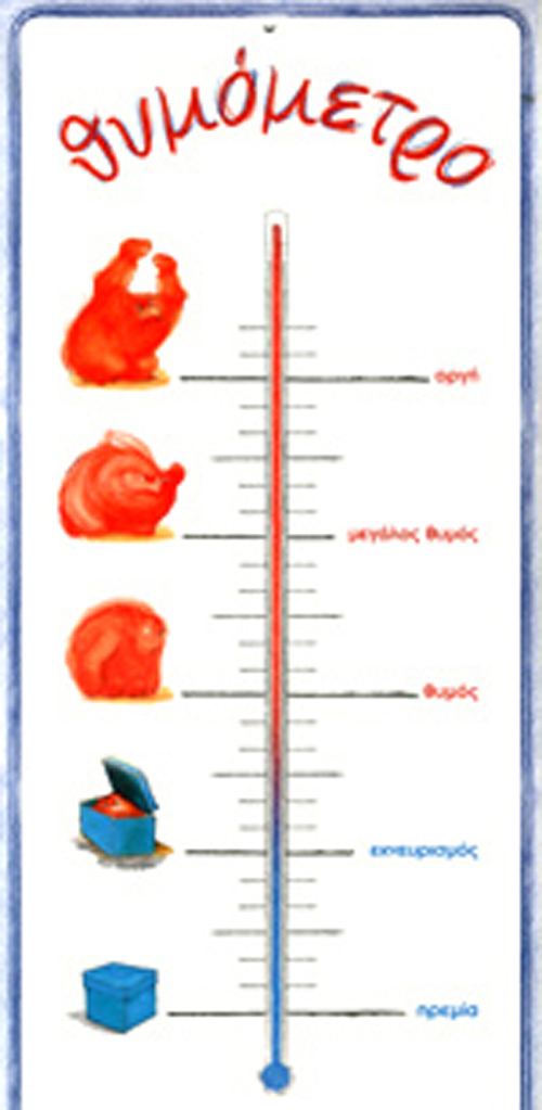 Εδώ σε θέλω μικρέ μου φίλε! Πόσο συχνά θυμώνεις στο σπίτι, στο σχολείο, στη βόλτα; Και τότε τι θες να κάνεις; Να τα γκρεμίσεις όλα; Να στεναχωρήσεις πολύ αυτόν που σε θύμωσε; Ή να τον κάνεις να θυμώσει ακόμα περισσότερο για να τον νικήσεις έτσι; Νομίζω ότι πρέπει να ζητήσεις από τη μαμά και το μπαμπά να σου αγοράσουν το «Θυμόμετρο» γιατί όταν αρχίσεις να το διαβάζεις θα δεις ότι με τίποτα δε θες να γίνεις σαν αυτούς τους μεγάλους που όταν θυμώνουν τους παρασέρνει αυτό το τρομερό συναίσθημα και κάνουν ή λένε πράγματα που μετά τους στεναχωρούν. Κοίτα λοιπόν να μετράς σωστά το θυμό σου χωρίς όμως να καταπιέζεσαι, ούτε όμως και να χάνεις τον αυτοέλεγχο σου και κυρίως να έχεις κατανόηση κι υπομονή όταν θυμώνουν οι άλλοι. Θα δεις πόσο πιο ωραία θα νιώθεις αν αρχίζεις να εξασκείς αυτά που θα διαβάζεις εδώ.