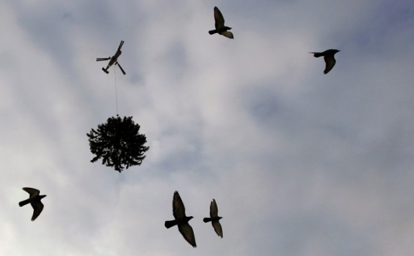 4. Ενώ στη Βέρνη, ελικόπτερο μεταφέρει το Χριστουγεννιάτικο δένδρο που θα στηθεί στην πλατεία!