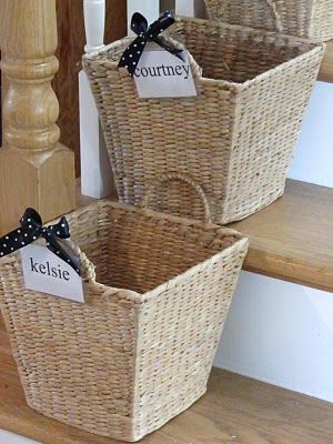 Ιδιαίτερα χρήσιμο tip αν μένουμε σε σπίτι με εσωτερική σκάλα, ισχύει όμως σε οποιαδήποτε περίπτωση: Το κάθε παιδί έχει ένα δικό του καλαθάκι, με το όνομά του πάνω, όπου μπαίνουν διάφορα δικά του αντικείμενα που “ξεφυτρώνουν” σε διάφορα σημεία του σπιτιού. Ένα αυτοκόλλητο, μία γόμα, ένα βιβλίο… Ο σκοπός είναι όλα τα αντικείμενα να συγκεντρώνονται εκεί ώστε να μην είναι διασκορπισμένα παντού μέσα στο σπίτι. Είναι μεγάλη ευκολία για τα παιδιά να έχουν ένα δικό τους προσωπικό καλάθι για να ρίξουν τα μικροαντικείμενα ώστε να μη χρειάζεται να το πάνε εκείνη τη στιγμή στο δωμάτιό τους, ειδικά αν το δωμάτιο είναι σε άλλον όροφο.