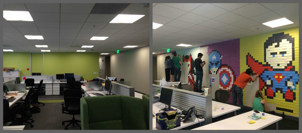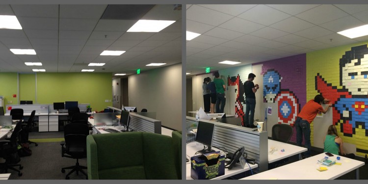 Χρειάστηκε 8.024 post-it, αφού προηγουμένως σχεδίασε επί 3 εβδομάδες τους χαρακτήρες των κόμικ που θα εμφανίζονταν στους τοίχους.