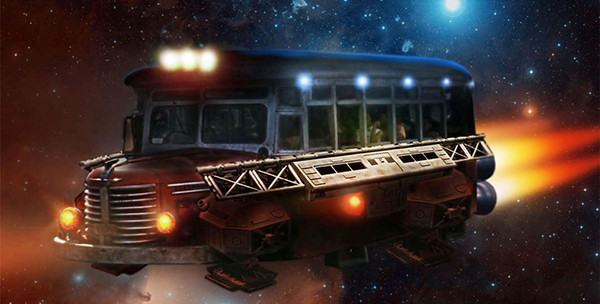 Είναι ένα όχημα σε σχήμα αεροπλάνου περίπου. Λέγεται λεωφορείο γιατί μεταφέρει ανθρώπους-το πλήρωμα- και φορτία.