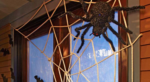 Θα «πλέξετε» έναν ιστό αράχνης αρχίζοντας από την κάσα της πόρτας. Θα φροντίσετε να ξεκινήσετε από το μέσον της πόρτας και επάνω, ώστε να μην κουτουλούν τα παιδιά και το χαλάσουν πριν την ώρα του.