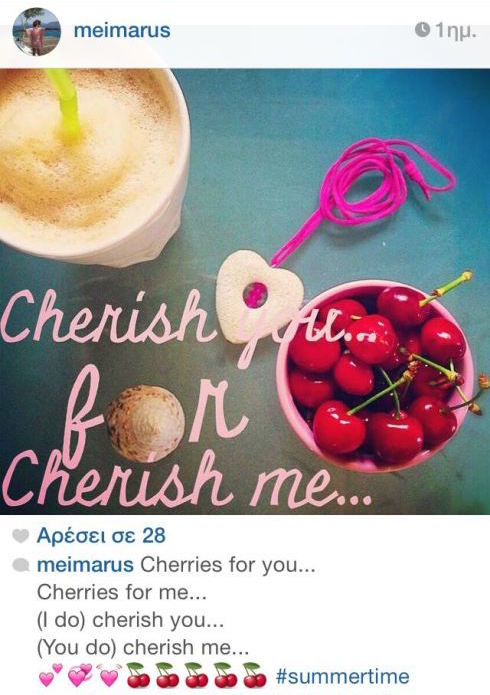 Τα βρήκα στη λαϊκή την ώρα που πήγαινα τον γιο μου στο σχολείο και γύρισα στο σπίτι ανυπόμονη. Μαζί με τον πρωινό καφέ, εγώ έτρωγα κεράσια! Και ενημέρωνα τον κόσμο στα social media, μη τυχόν και κανείς είχε καούρες πρωινιάτικα, πώς να πίνω τον καφέ μου! Ασυνόδευτο ή με συνοδεία.