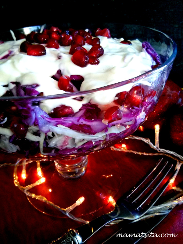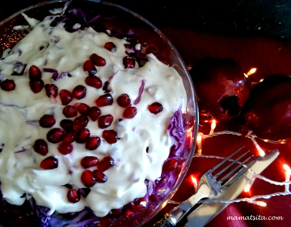 Ανακατέψτε καλά και προσθέστε πάνω από τα λάχανα. Και φυσικά δεν ξεχνάμε να γαρνίρουμε με ρόδι.